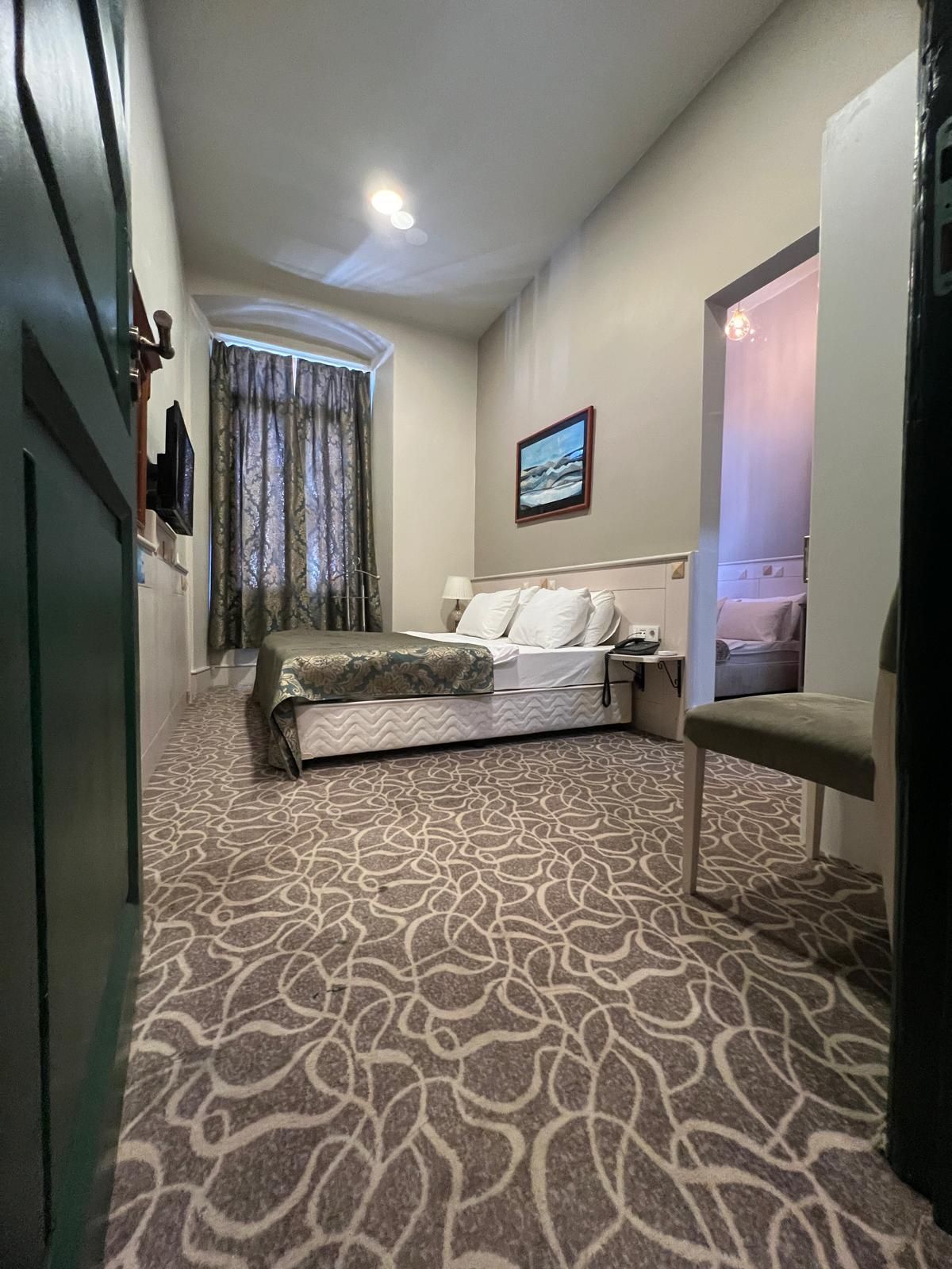 This 22 m² double room stands out with its parquet flooring and comfortable design. It features a seating area, flat-screen TV with cable channels, air conditioning, soundproofing, and a minibar. The private bathroom includes a shower, free toiletries, towels, slippers, and a hairdryer. It also offers a desk, safety deposit box, electric kettle, iron, telephone, dining area, alarm system, and air purifier. Non-smoking.