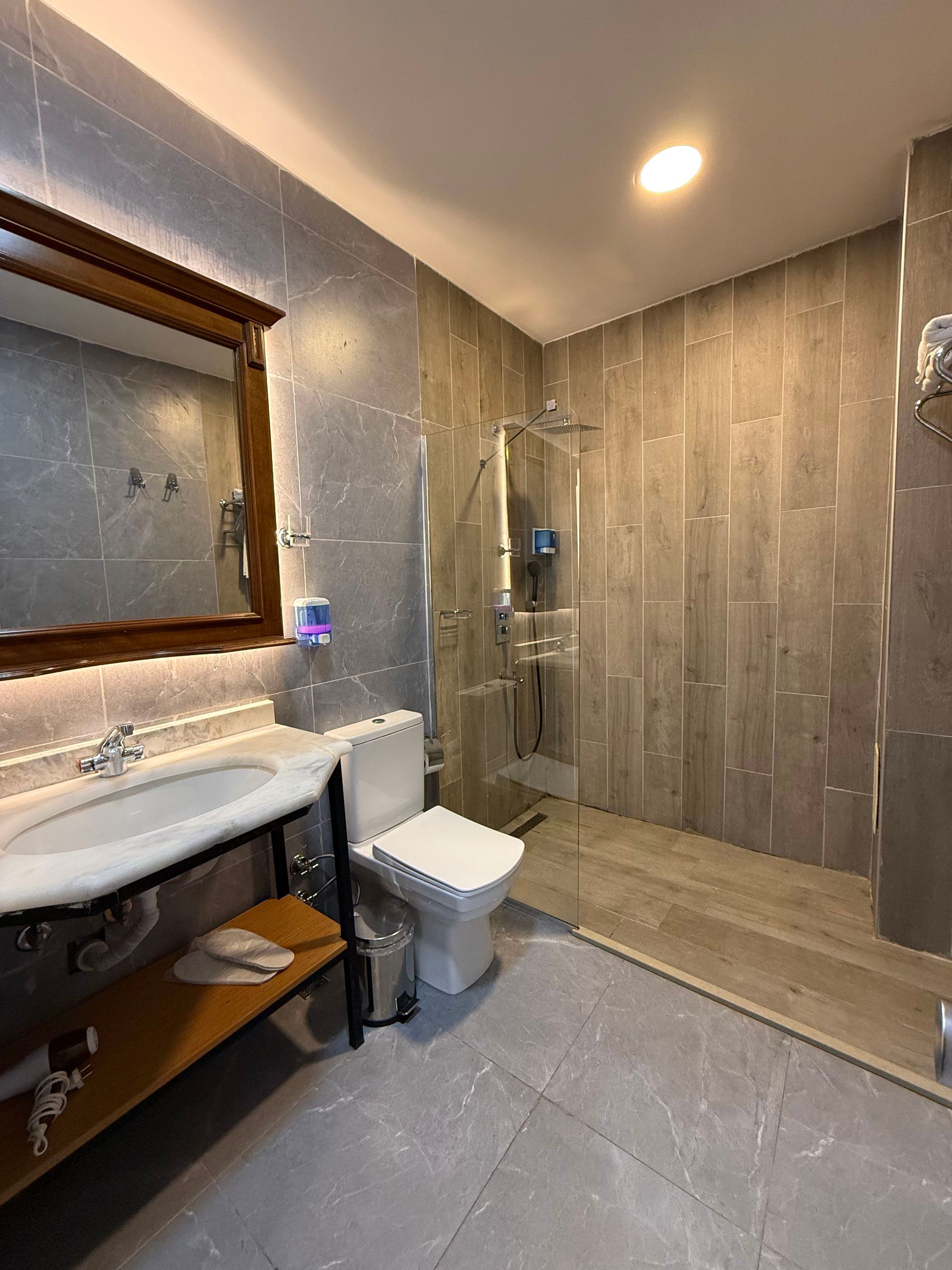 This 22 m² double room stands out with its parquet flooring and comfortable design. It features a seating area, flat-screen TV with cable channels, air conditioning, soundproofing, and a minibar. The private bathroom includes a shower, free toiletries, towels, slippers, and a hairdryer. It also offers a desk, safety deposit box, electric kettle, iron, telephone, dining area, alarm system, and air purifier. Non-smoking.